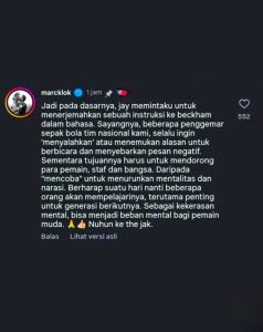 Ia menutup pesannya dengan sebuah harapan besar agar para penggemar sepak bola di tanah air bisa lebih bijak dalam bersosial media. Tujuannya satu: agar generasi penerus Timnas bisa tumbuh dalam lingkungan yang suportif dan sehat secara mental.