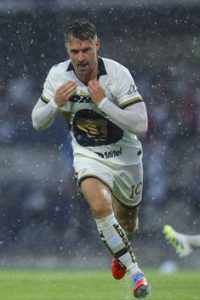 Setelah berkelana ke Juventus, Nice, hingga menutup perjalanannya dengan kembali ke Cardiff City dan sempat berkarier di Meksiko (Pumas UNAM), Ramsey akhirnya memutuskan untuk menggantung sepatu. MEXICO CITY, MEXICO – AUGUST 31: Aaron Ramsey of Pumas celebrates after scoring the team’s first goal during the 7th round match between Pumas UNAM and Atlas as part of the Torneo Apertura 2025 Liga MX at Estadio Olimpico Universitario on August 31, 2025 in Mexico City, Mexico. (Photo by Agustin Cuevas/Getty Images)